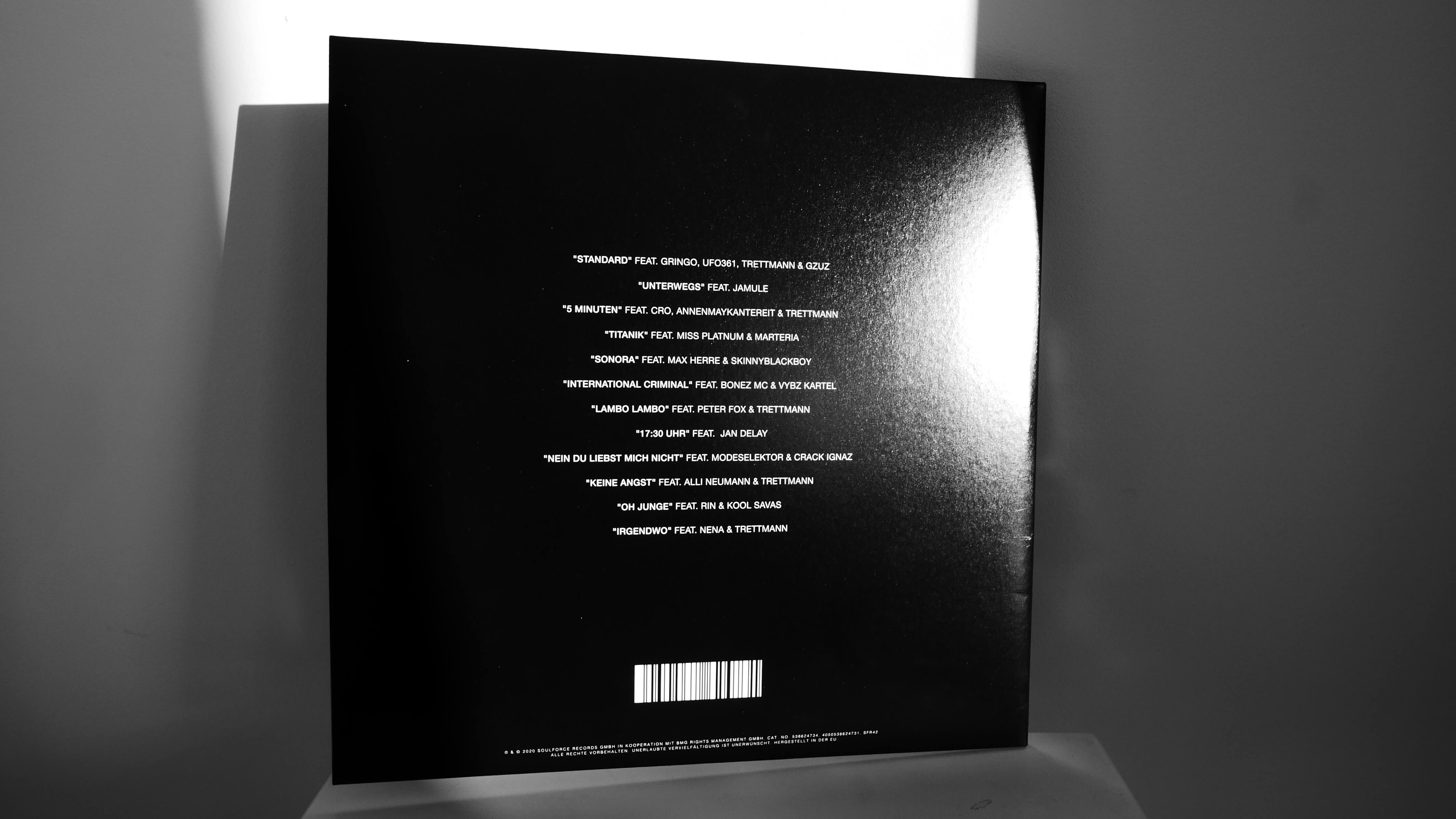 A1 Standard (feat. GRINGO, UFO361, TRETTMANN & GZUZ). A2 Unterwegs (feat. JAMULE). A3 5 Minuten (feat. CRO, ANNENMAYKANTEREIT & TRETTMANN).