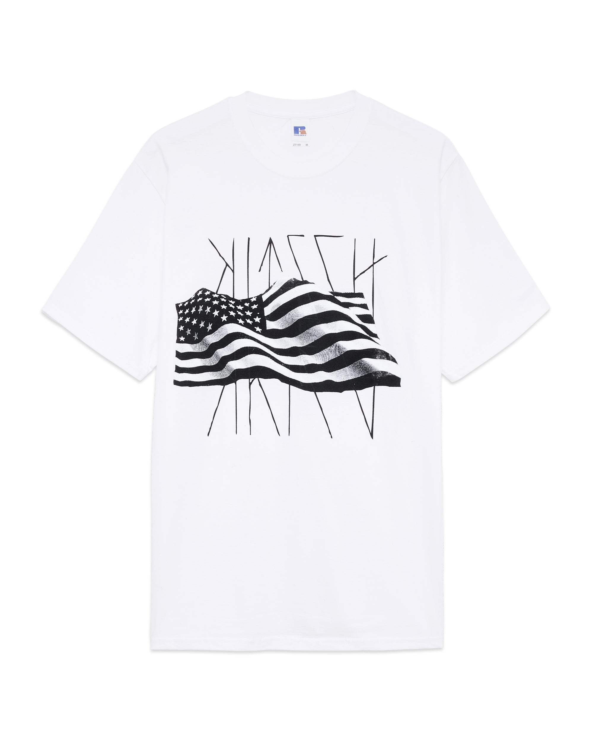 100 % Cotton. 180 gsm fabric. Russell T-Shirt. Color: Black. Screen Print. Machine wash.
